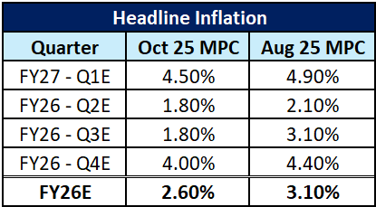 Despite global uncertainties, India’s economic activity has remained resilient, with real GDP growth surprising on the upside at 7.8% for Q1. The MPC revised GDP growth estimates upwards citing factors such as an above-normal monsoon and buoyancy in the services sector, with risks remaining evenly balanced.