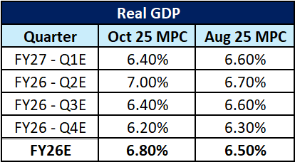 On the external front, the governor acknowledged that higher US tariffs could not be fully offset by GST rate cuts. Consequently, the MPC has revised downwards its GDP growth forecast for the second half of FY26, even as domestic demand remains supportive.