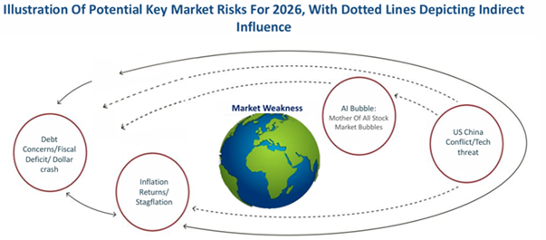 In summary, 2026 is shaping up as a year of moderate growth, policy transition, and elevated geopolitical risk. India’s domestic fundamentals remain relatively strong, but successful investing will require disciplined asset allocation, diversification, and a focus on long-term structural themes rather than short-term market narratives.